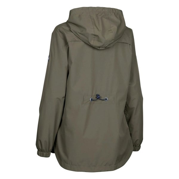 A grown-on hood adds coverage and includes an adjustable drawcord, jersey lining and stripe lining. The front fastens with a full zip and stormflap, while two side zip pockets keep small essentials secure. Bust darts and an adjustable back strap complete the construction.