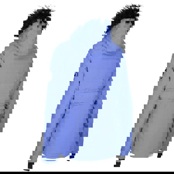 A hooded neckline and long sleeves provide coverage, with a detachable hood trim in faux fur. Practical ski-ready details include a detachable snowskirt, underarm vents and a drawcord hem. Storage includes two lower pockets and dedicated compartments for a ski pass, goggles and audio, with zip fastenings and a water repellent full zip at the front.