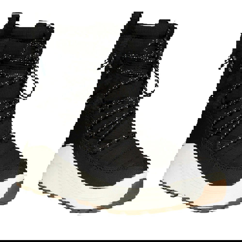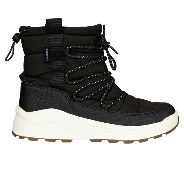 These women’s Indie snow boots from Trespass combine a practical ankle cut with a flat profile for everyday wear in colder conditions. The upper uses PU (polyurethane) and textile, finished with a round toe and logo detailing for a clean, branded look.