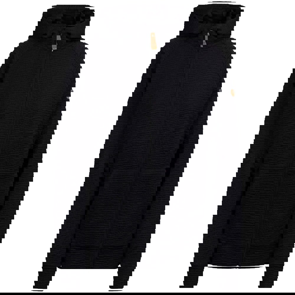 This full zip hoodie comes in navy with a plain design and a textured finish. Made from a blend of 81% polyester, 15% rayon and 4% elastane, it has long sleeves and a hooded neckline with a sew-on hood. A full-length zip fastening keeps the front clean and easy to wear for outdoor use.