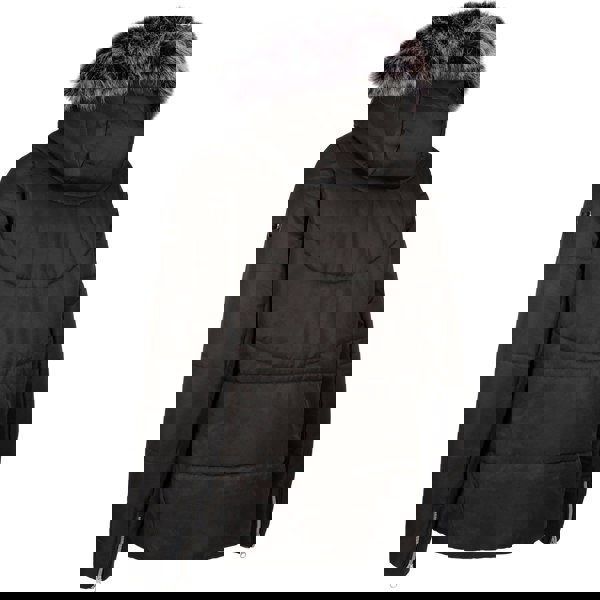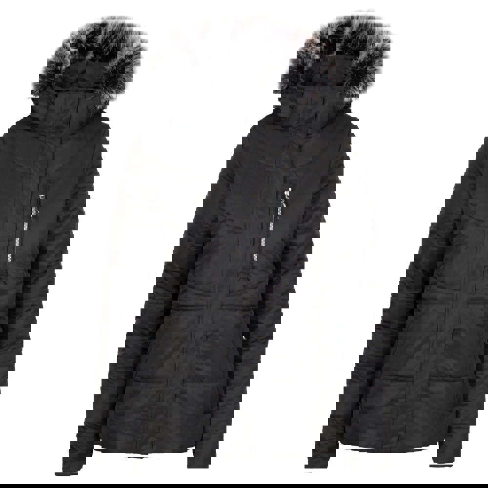 Built for wet and windy conditions, the fabric technology is breathable, waterproof and windproof, with a waterproof rating of 3000mm and breathability of 3000g/m²/24hrs. The hooded neckline includes a standing collar, while the adjustable hood has a detachable faux fur trim with a zip-off finish. A full zip fastening with stormflap and three zip pockets complete the practical layout.