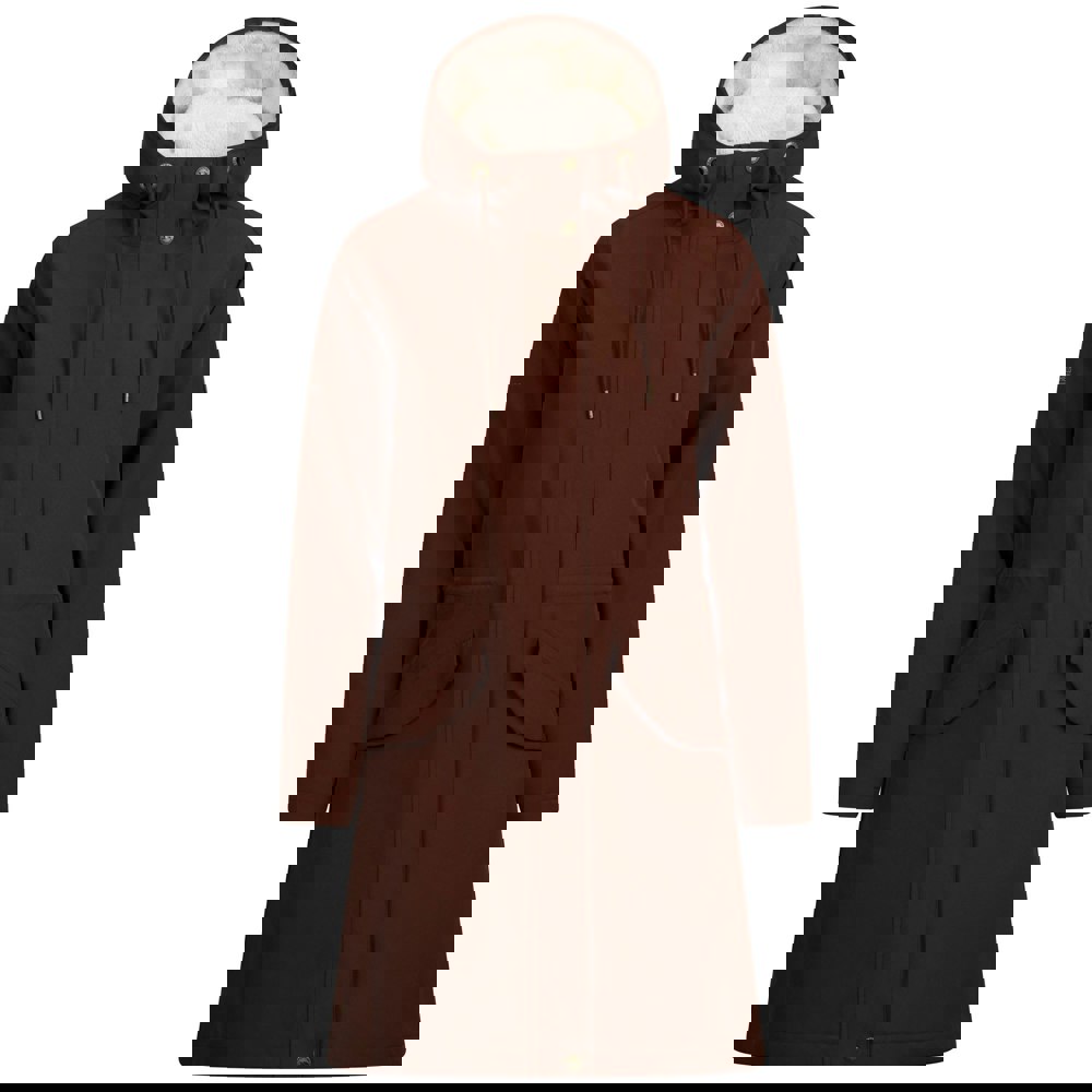 This long waterproof jacket is made with a polyester outer and a TPU membrane, finished with a soft-touch woven feel. It is lined in 100% polyester with a mix of furry fleece, pile and quilted sections. The plain design is detailed with a logo and badge, and the loose fit allows easy layering.