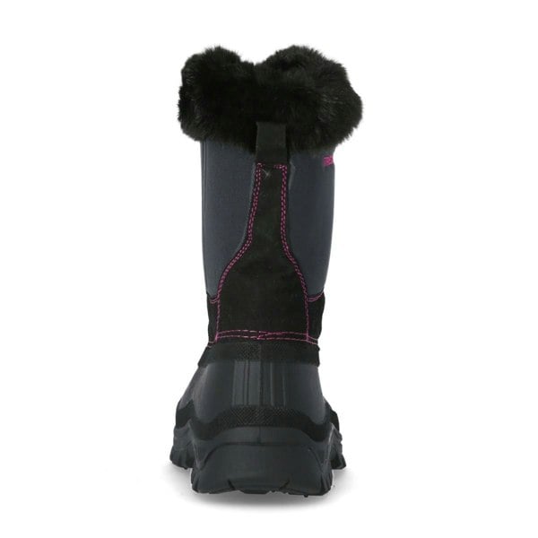 These women’s snow boots are made from a blend of imitation suede/faux fur and TPR moulded material. Finished in black, they include a faux fur lining for added comfort in cold conditions.