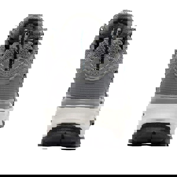 Finished with a padded collar and padded tongue, this pair also includes a pull tab for easier on and off. The grey design is patterned and includes text detailing.