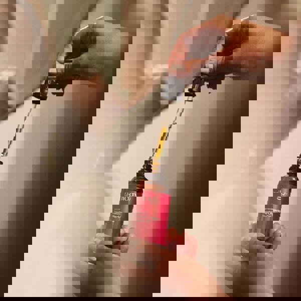 Apply 2-3 drops of Trilogy Certified Rosehip Oil to the palm of your hand