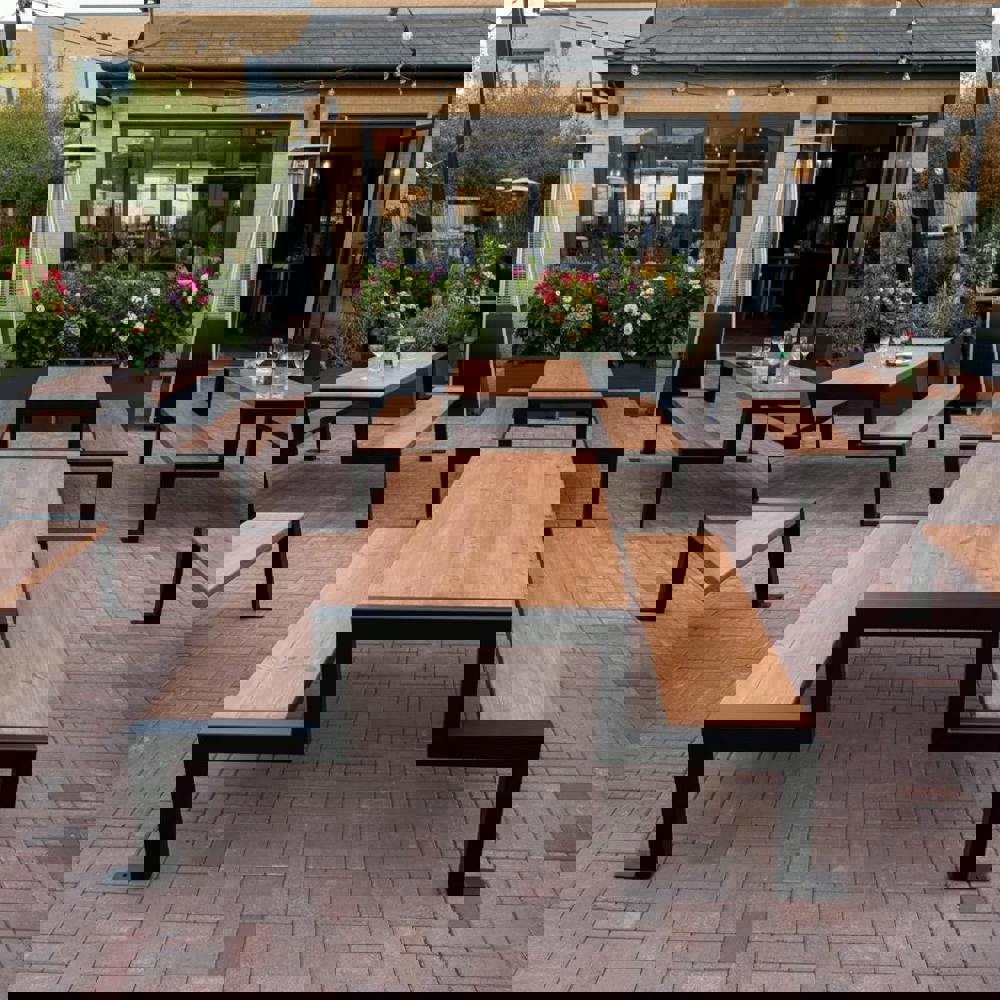 This handmade Commercial Aztec Picnic Table with Fixed Benches features a sturdy 70mm thick timber table top and benches, available in multiple sizes with bespoke options. Built for durability and heavy use, it is highly suitable for commercial purposes, making it ideal for pubs, cafés, restaurants, hotels, and busy outdoor venues.