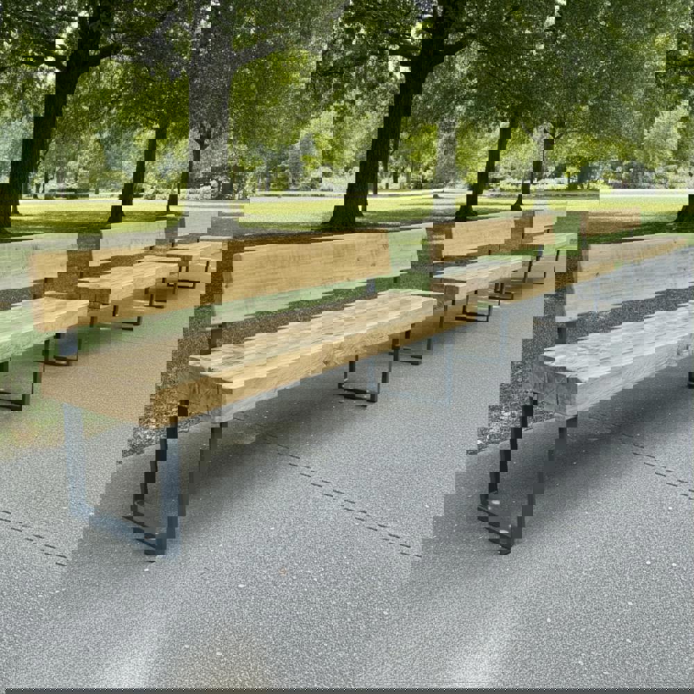 Our Commercial Outdoor Sleeper Bench with Back is crafted from thick 100mm sleeper planks, carefully sanded to offer a smooth yet rustic finish. Each bench is stained and coated with a UV and scratch-resistant finish, ensuring durability and style in any outdoor setting, including commercial spaces such as cafés, pubs, and outdoor venues—making it an ideal piece of commercial furniture.