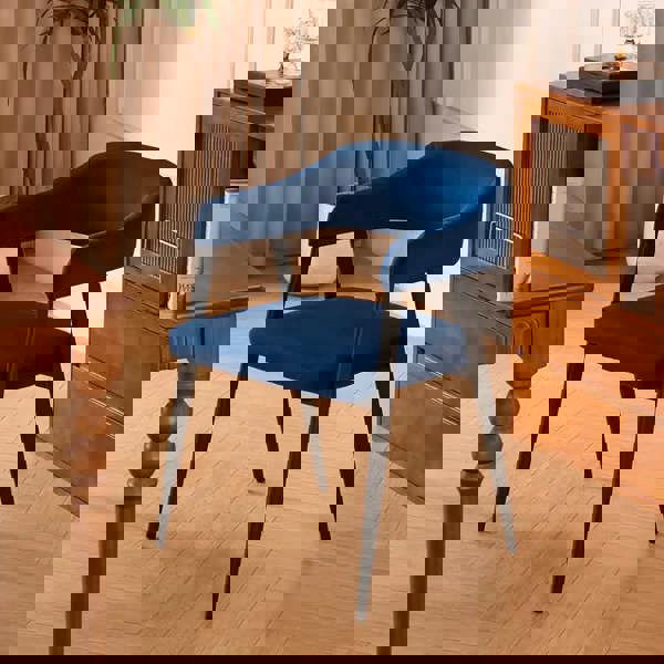 Bring elegance and comfort to your dining space with the Haven Dining Chair - Dark Navy (Set of 2) in luxurious dark navy. Featuring a curved backrest with integrated armrests and a foam-padded seat, these chairs provide excellent support for long meals and gatherings. The plush velvet upholstery adds a touch of sophistication, making them ideal for both classic and contemporary interiors.
