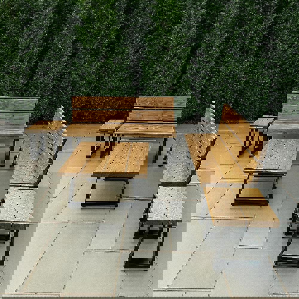 Our Outdoor Lounger Set is a fresh design featuring wider benches and larger backrests, providing a comfortable and relaxing outdoor space. Each Outdoor Lounger Set includes a selection of tables and comes in three different size options, so you can find the perfect fit for your garden or patio.