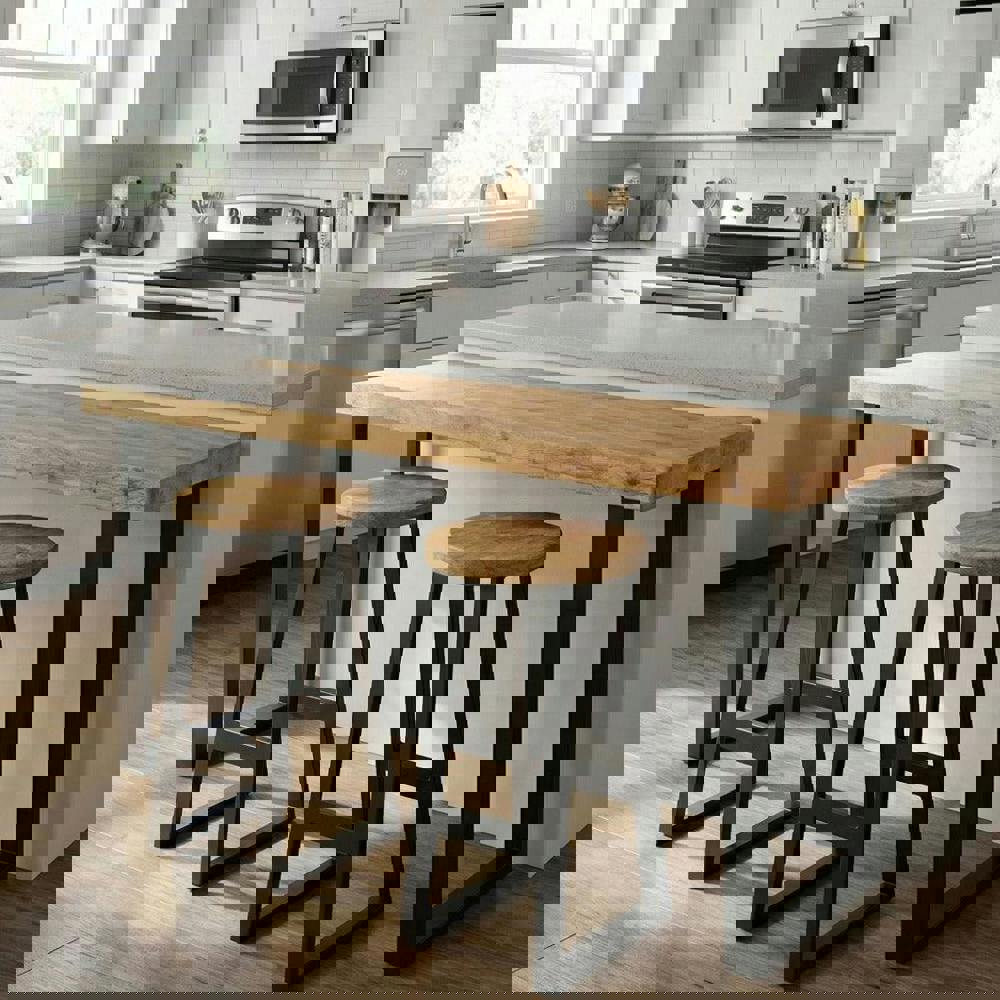 Our Rustic Round Breakfast Bar Stool by TRL Handmade Furniture is expertly handcrafted from Swedish redwood, featuring a distinctive construction and circular seat that beautifully emphasise the timber’s warm reddish tones, straight grain, and natural durability. Each stool is individually made to celebrate the organic character of redwood, ensuring every bespoke piece displays subtle tonal variation and authentic rustic charm. The rounded seat profile softens the silhouette while maintaining a strong handcrafted presence, making this rustic round bar stool a perfect fit for farmhouse, country, cottage, and modern natural kitchen interiors.