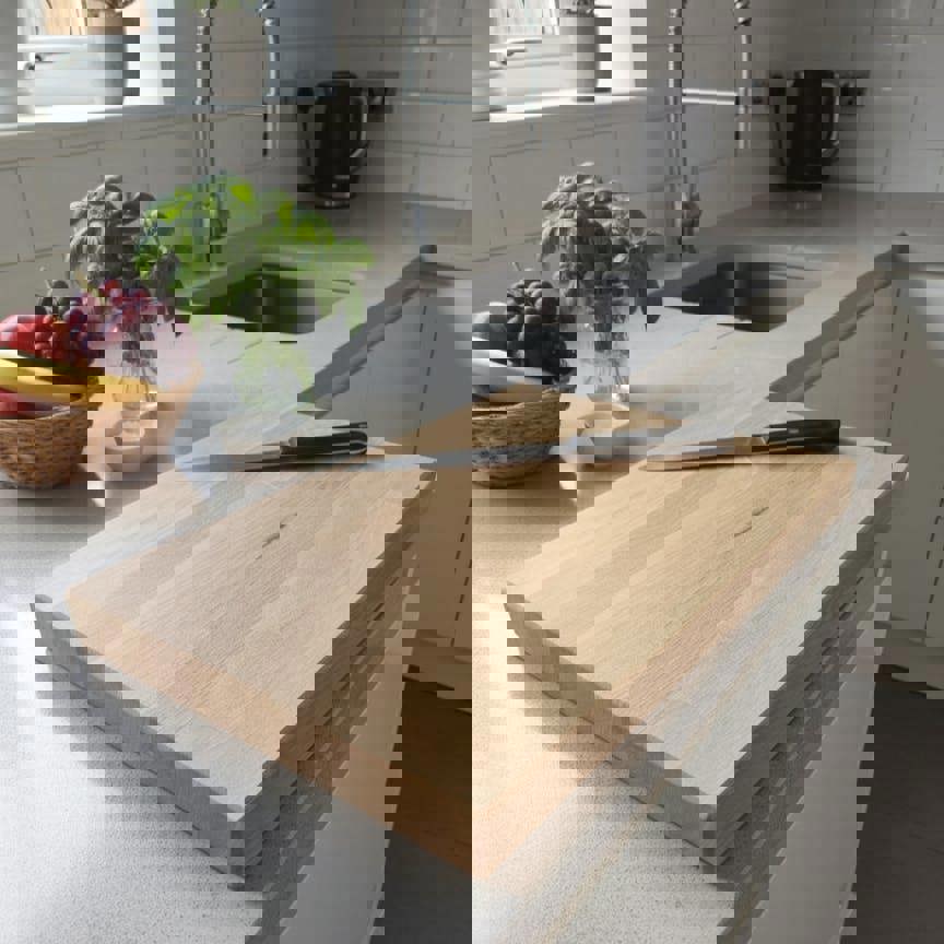Perfect for both home kitchens and professional settings, these handmade staved oak chopping boards are ideal for slicing vegetables, carving meat, preparing bread, or presenting cheese and charcuterie. Oak’s natural durability ensures excellent performance while staying gentle on knife edges. Whether used as a practical kitchen tool or an elegant serving piece, this staved oak chopping board from TRL Handmade Furniture offers timeless quality, craftsmanship, and reliability.