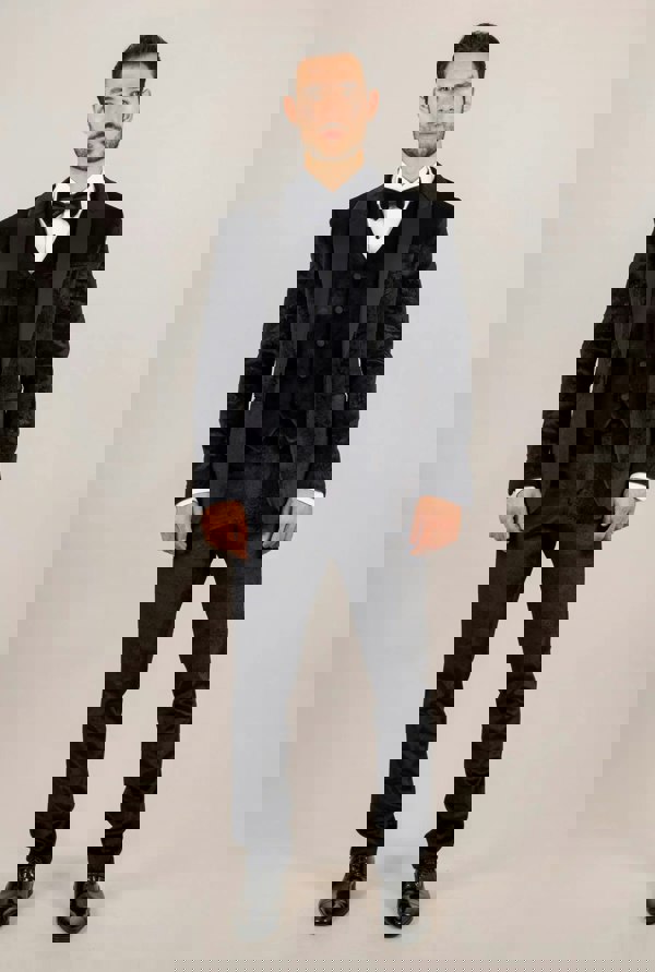 TruClothing AK-26 - Men's Black 3 Piece Velvet Wedding Tuxedo Suit
