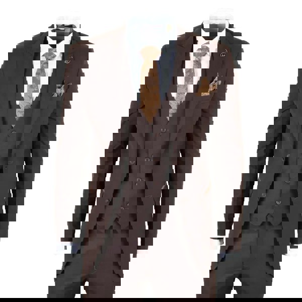 * Complete 3-Piece Set: Includes a dark brown 2-button blazer, 4-button waistcoat, and tapered trousers, delivering a coordinated and polished outfit for any event