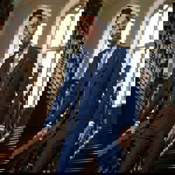 • Striking Color Combination: Features a deep blue suit with subtle grey contrast trim, delivering a modern and polished appearance suitable for business, weddings, or formal events.