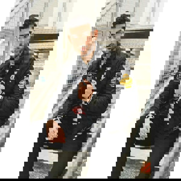 * Detailed Craftsmanship: Showcases embroidered details such as “Ripe College” and “London State Champs” reflecting meticulous stitching and superior quality