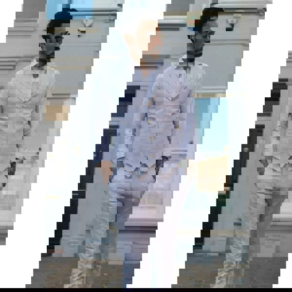 * Mens 2 Piece linen suit comes complete with waistcoat & trousers, finished in a summer grey