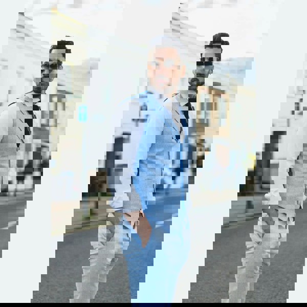 * Mens 2 Piece linen suit comes complete with waistcoat & trousers, finished in a summer baby blue