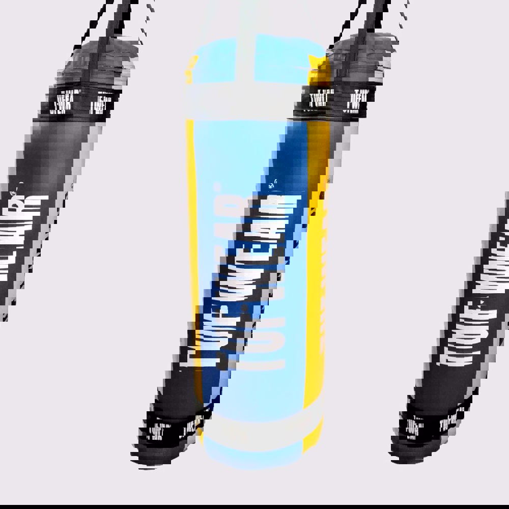 The Tuf Wear Balboa 4FT Straight punchbag is crafted in a heavy duty synthetic leather in a blue/yellow colourway. The punchbag weighs in at approx 40kg and with a 15 inch diameter. Complete with 4 hanging straps to sit proudly within your gym.