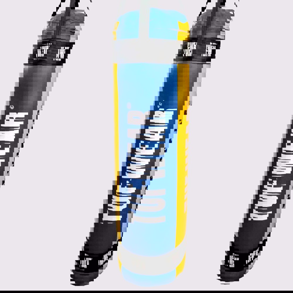 The Tuf Wear Balboa 6FT Straight punchbag is crafted in a heavy duty synthetic leather in a blue/yellow colourway. The punchbag weighs in at approx 60kg and with a 15 inch diameter. Complete with 4 hanging straps to sit proudly within your gym.