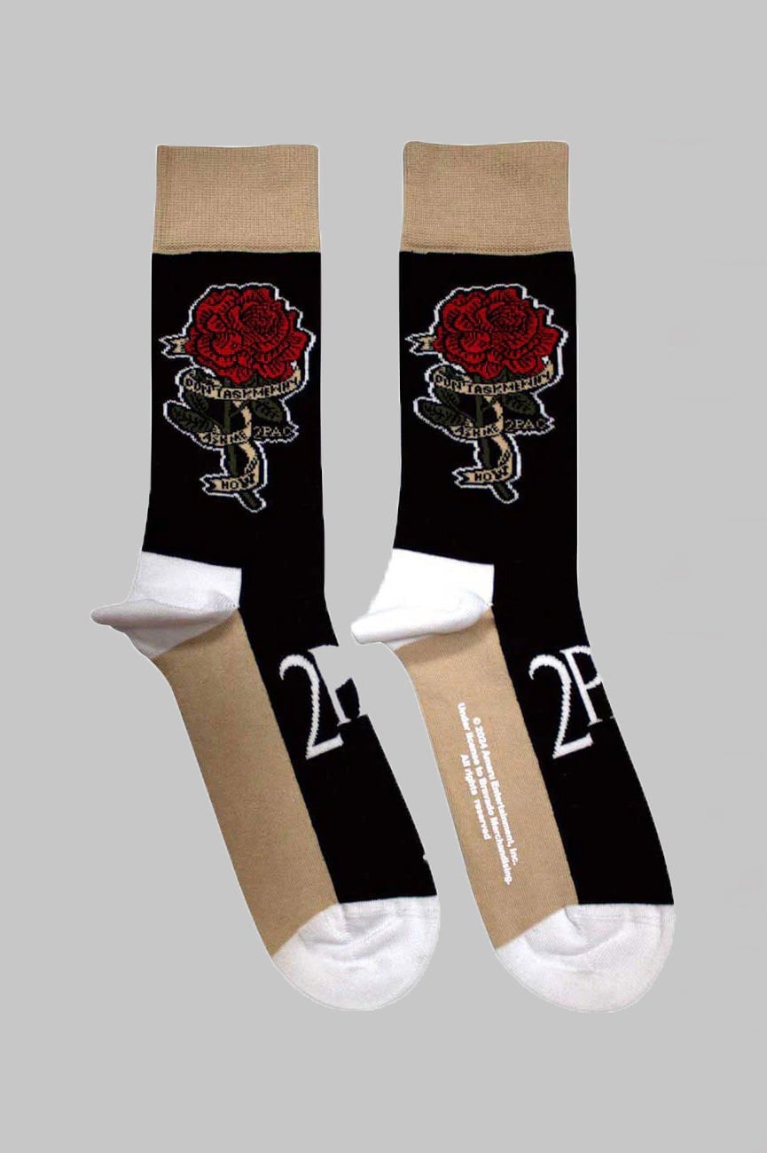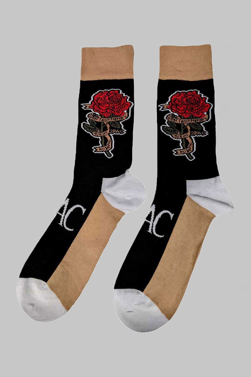 Official licensed Tupac Unisex Ankle Socks featuring the 'Thug Life' design motif. High quality Ankle Socks available in a black colourway. High quality 86% cotton, 12% polyamide, 2% elastane unisex ankle socks featuring an all-over pattern and cotton rich. These woven socks are guaranteed to stand out in the crowd.