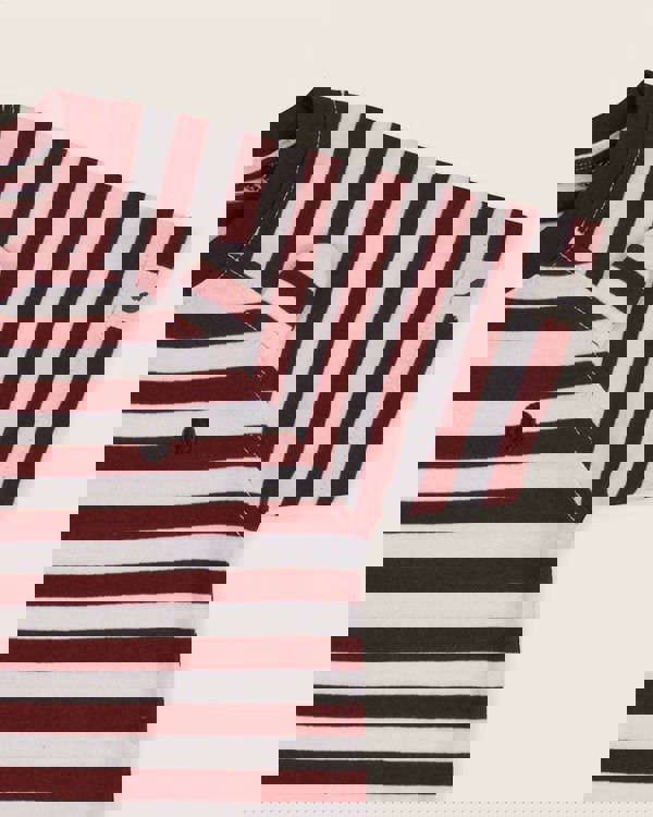 In a brick stripe base, our jersey short-sleeve kids top features our stripe print and bear face character with 3-D ears.Made from our super-soft 100% GOTS organic cotton jersey fabric, this sustainable kids top is great for those warmer days playing under the sun or running around indoors! Complete the look with any of our non-seasonal range of bottoms or use as a layering piece under our kids dungarees.
