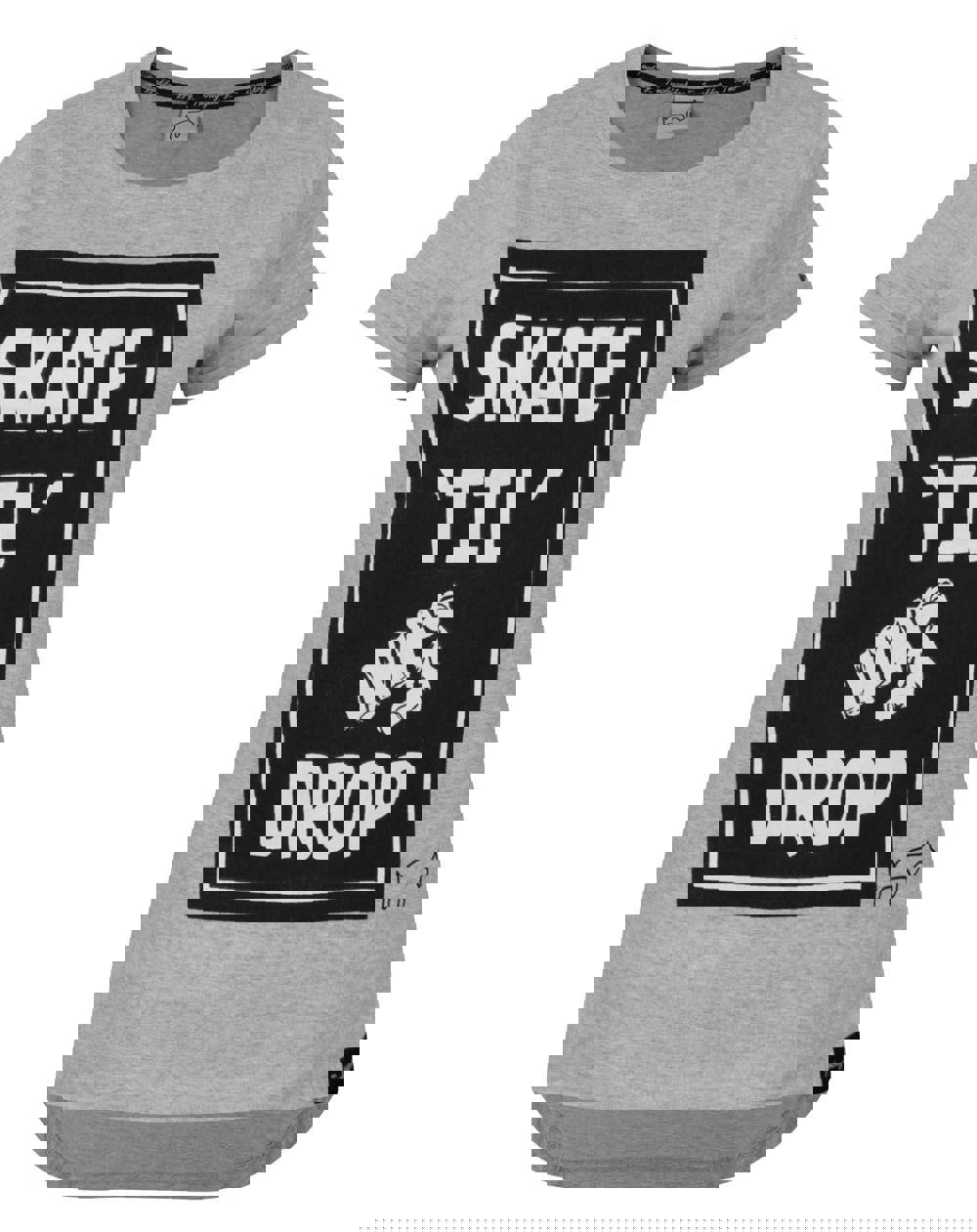 The design across the front of this t-shirt offers a cool skate inspired look with a slogan style edge reading 'Skate til you drop' with a cool retro edge