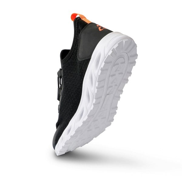 The Typhoon TS10 Sneaker boasts a non-slip rubber sole and 15mm EVA insert for superior grip. Its quick lacing system includes a lace lock for a secure fit, and the removable comfort EVA insole offers added support. The EVA outsole features a drainage system, while the reinforced heel and toe box provide extra durability. Additionally, the internal heel has added foam for enhanced comfort and lockdown