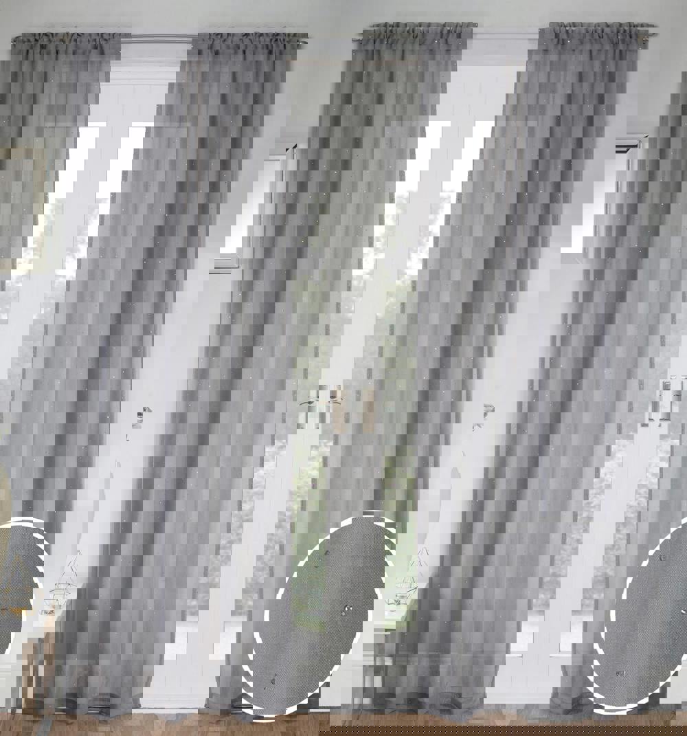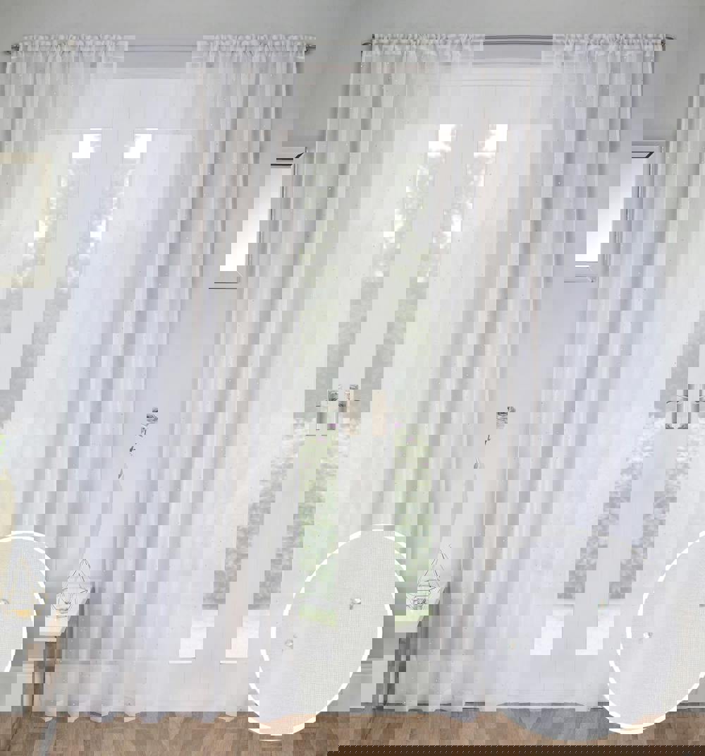 Add some sparkle into your home with Jewel, a glistening voile panel featuring all over dismantes.