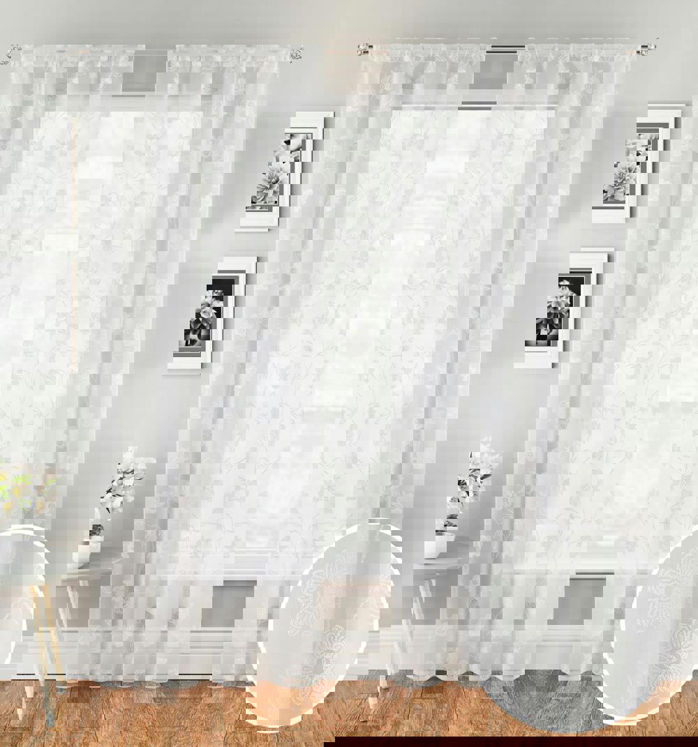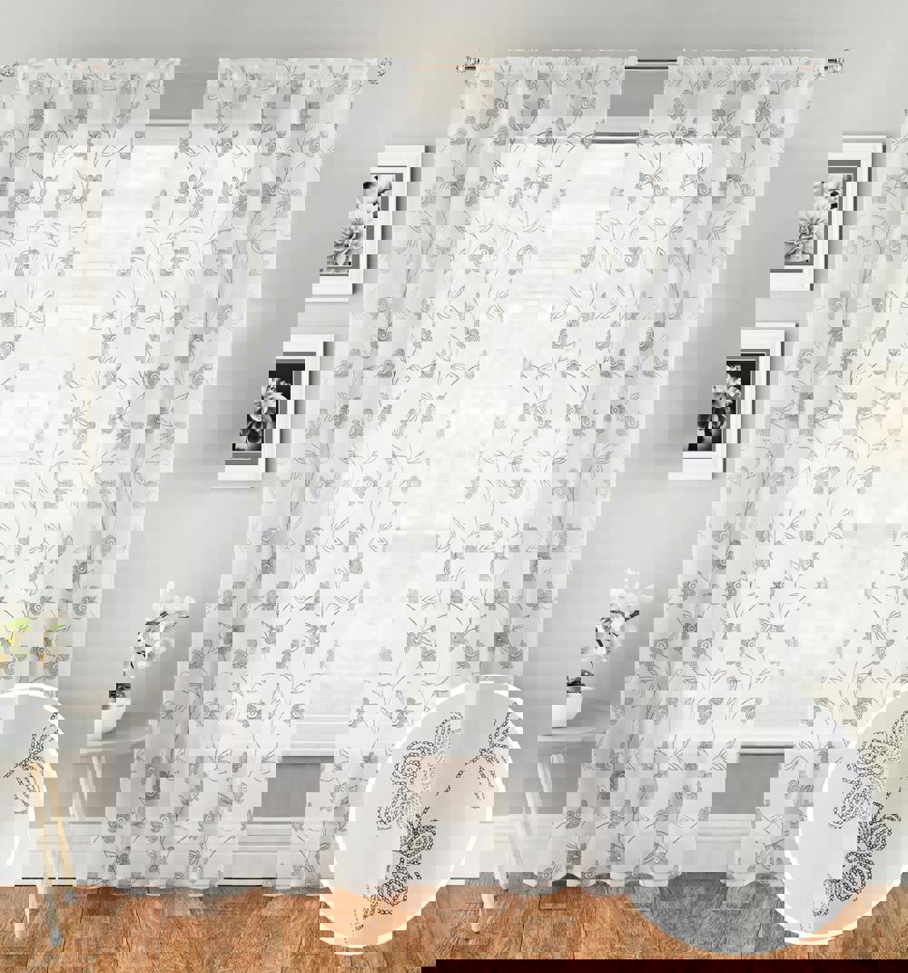 Tyrone Textiles Sienna Embroidery-Look Floral Print Voile Panel - Pair