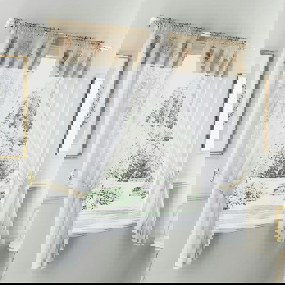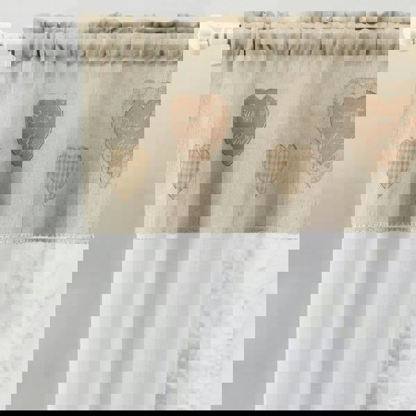 Sweetheart is an embroidery 'Sweet Home' design, with natural linen look header and 2 matching linen look tie backs