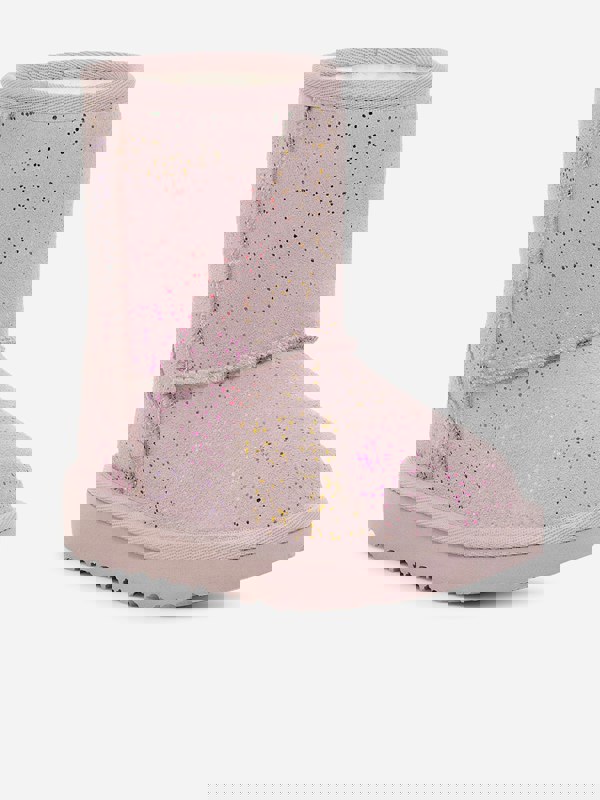 UGG Girls Classic II Shimmer Sky Boots in purple bring a shimmering finish to a classic boot shape for AW2024. The upper has an eye-catching purple shimmer, while the interior is lined with UGG’s signature soft wool for warmth and comfort. A slip-on construction keeps them easy to pull on and off for everyday wear.