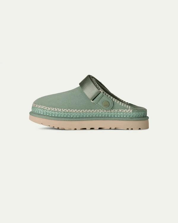 UGG® comfort with a handcrafted vibe. The Goldenstar Meadow Accent Clog is embellished with decorative, artisan-inspired embroidery that fits right in, whether you're wandering the farmer's market or dressing it up for a full fashion moment. The adjustable strap features a swivel design for a 2-in-1 wearing option—as a heel strap or folded forward for easy on and off. The 100% recycled textile lining has an anti-odour treatment for fresh, happy feet, while an ultra-lightweight sugarcane EVA outsole provides all-day cushion and support.