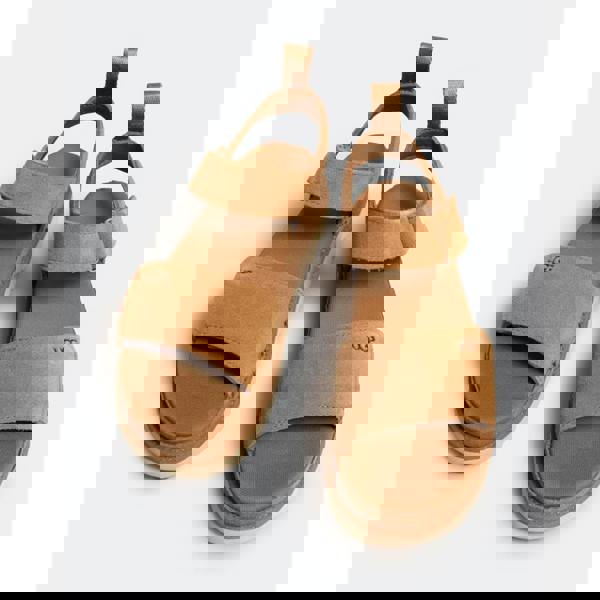 Clean lines and a subtle platform profile give the UGG Goldenstar womens sandals an easy, pared-back look in chestnut. Crafted with a suede upper, they balance a minimalist finish with practical adjustability for day-to-day wear. Two sets of straps include an adjustable ankle strap with a hook-and-loop closure, allowing the fit to be fine-tuned.