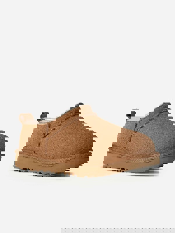 UGG Kids Classic Micro Slippers in brown bring a classic look to cooler-season wear for boys and girls. The outer uses brown suede, paired with a wool interior for a warm, cosy feel. A sturdy yet flexible sole completes the design for indoor wear and outdoor play.