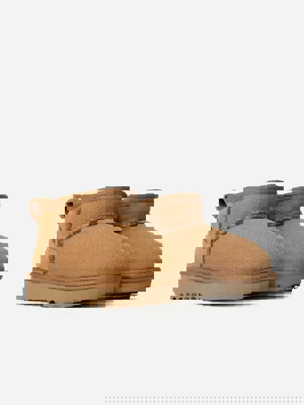 The UGG Kids Classic Ultra Mini Boots in brown bring a classic look to a child’s footwear collection. The ultra mini boot shape keeps the design clean and simple, finished in a timeless brown colour.
