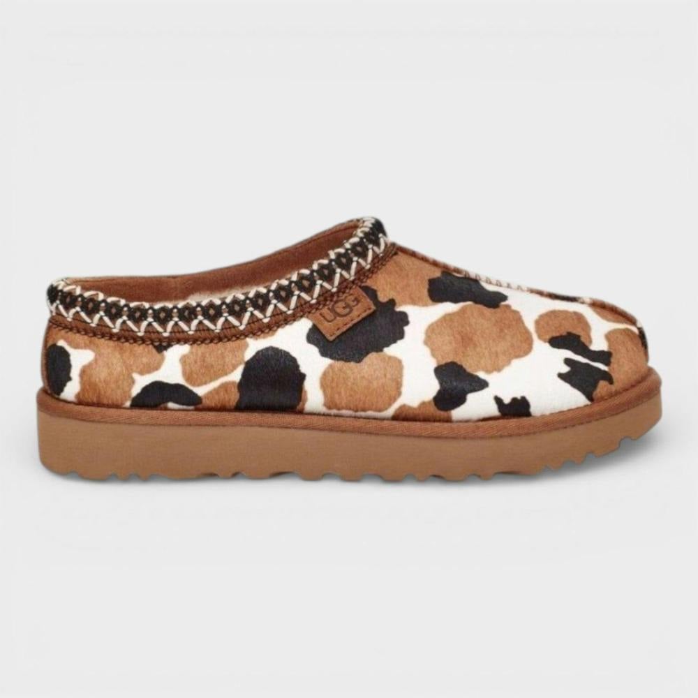 UGG brings a playful finish to downtime with the Tasman Cowprint Slipper, a brown slipper with an all-over cow print. Easy to slip on, it offers a relaxed option for wearing around the home, pairing a distinctive pattern with a versatile colourway that works with casual loungewear.