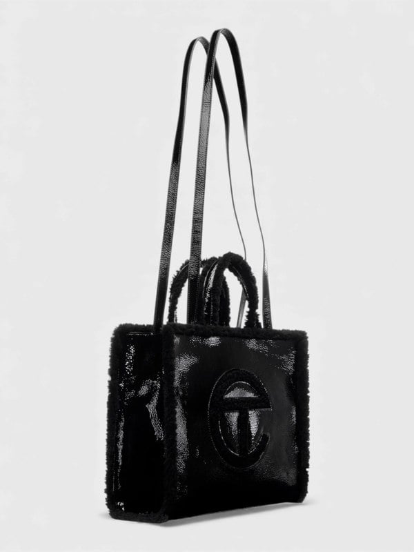 The Ugg x Telfar Medium Shopper in Crinkle Black represents a refined collaboration between two iconic brands.