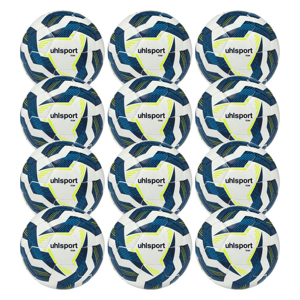 This pack of 12 x Uhlsport team training footballs is great for team training as well as for individual soccer skill practice. This multi pack comprises 12 x size 4 footballs in a white / blue / fluorescent green colour design and are ideal for clubs, teams and schools. The balls are made with a durable soft TPU material and have a high rebound butyl bladder which offers maximum air retention and game play characteristics. The balls also have 32 machine-stitched panels.