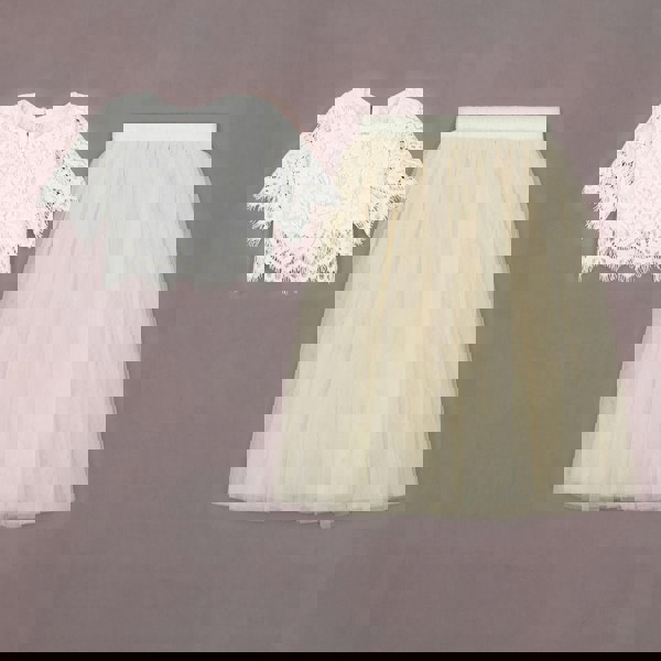 Softest lace crop top and layered Ivory Cream tulle skirt set.