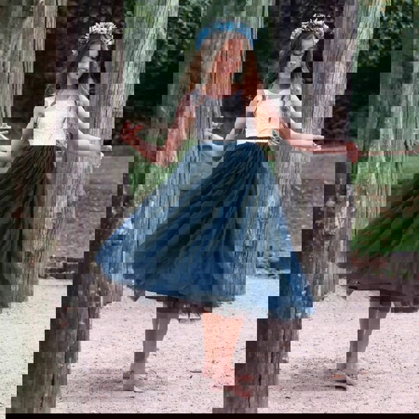 This is matched perfectly with a deep dark blue layered full length tulle skirt.