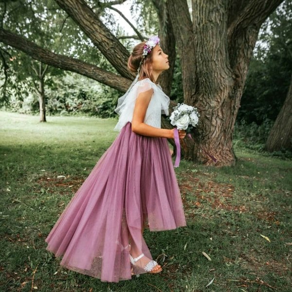 Layer after layer of soft coloured blush tulle make the dress skirt something very special for your little ladies.