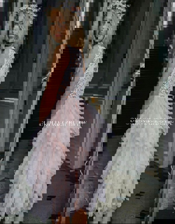 The upper bodice, is made with the softest white quality lace. Chest lined and featuring a pretty lace and pearl and sequin applique to the front. This is matched perfectly with the fullest softest blush layered tulle tutu skirt. This quality really do puff out (*Please beware as some imitations fall flat when worn). Note the blush tulle is more towards a peach tone than pink.