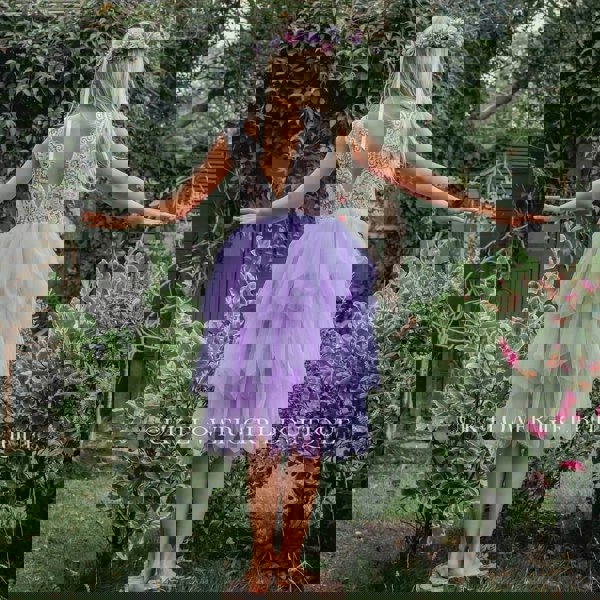 The white upper bodice, is made with the softest white quality lace. Chest piece is lined and featuring a pretty lace and pearl applique. This is matched perfectly with the fullest layered soft lilac tulle tutu skirt.