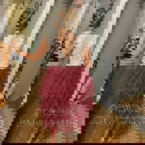 This is matched perfectly with the fullest layered deep burgundy red tulle tutu skirt. Swirl around to reveal the prettiest lace eyelash open back.