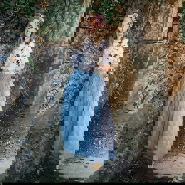 The silver blue skirt will fall between ankle & maxi length depending on child's height, elasticated waistband, and fully lined. Please note this is a silver with blue tones rather than grey, we can arrange for the silver grey to be made if you were looking for this colour tulle.