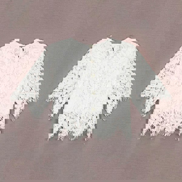 Pretty lace tops, select 3/4 length sleeve or the sleeveless option. Made with an off white lace and lined. This pretty top is perfect for both Ivory and White colour palettes.
