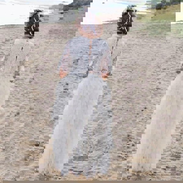 Softest sleeveless lace crop top and layered tulle skirt set.
