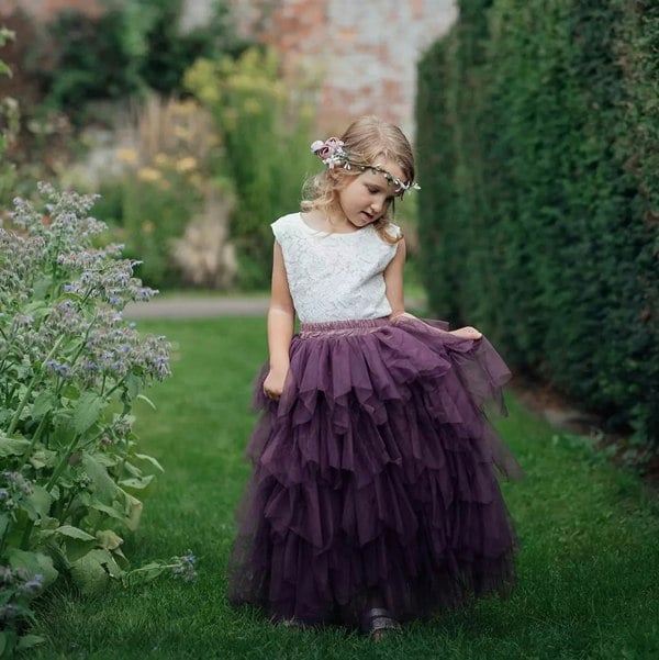 The rich purple tulle skirt will fall at around a maxi length depending on baby or child's height. Lots of layers make the skirt perfect for twirling, elasticated waistband, and fully lined.