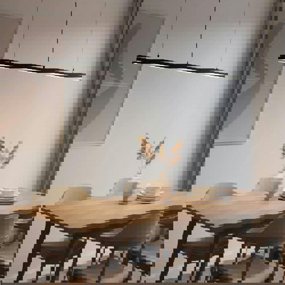 For those of you who are looking to brighten up that darker room or corridor in your home or business you may want to consider a long pendant light. A longer pendant ceiling light can add to your home's décor while providing more light where light is needed. The LPL142A 20 watt black linear pendant light fixture is modern enough for any home or business while still providing the light you need to brighten up any room in your home. This ceiling light features high quality 20 watt SMD LEDs with an output of 2000 lumens of warm white light.