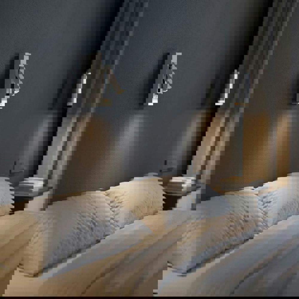A sleek wall mounted reading light featuring a 3-watt CREE LED that delivers 120 lumens of bright, focused illumination. The neutral white finish complements any bedroom décor, while the fully adjustable arm positions light exactly where you need it. Surface-mounted installation is straightforward, and the integrated rocker switch on the backplate provides convenient on-off control. Ideal for bedside reading without taking up valuable table space.